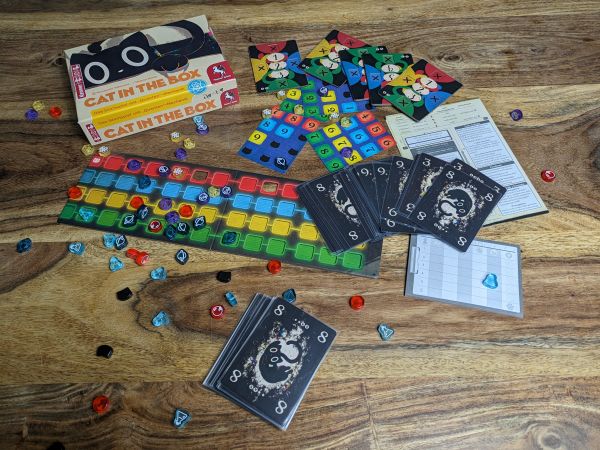 Zur Spielemesse in Essen im Jahre 2023 kam der Überraschungshit aus dem Vorjahr dann bei Pegasus heraus. Doch viele Spiele, die zur Messe heiß begehrt sind, werden danach in den sozialen Medien schnell wieder vergessen – insbesondere etwas kleinere Spiele wie „Cat in the Box“. So ist schon jetzt festzustellen, dass das Interesse anscheinend wirklich schnell nachgelassen hat und das Spiel nach anfänglicher Begeisterung nur eher selten auf den Tisch kommt. Also warum? Schauen wir doch nochmal genau hin, was das Spiel denn gut macht und was vielleicht verhindern könnte, dass es zu einem Dauerbrenner wird, den man immer wieder gerne aus dem Regal holt.