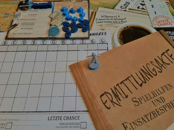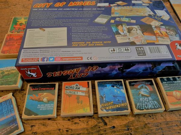 Fazit: „City of Angels“ hat die thematische Zeitreise in das L.A. der 1940er Jahre fulminant umgesetzt. Man fühlt sich wie ein Detective und man merkt in jeder Minute des Spiels, dass der Autor hier ein Herzensprojekt geschaffen hat. Hinzu kommt, dass das Spiel tatsächlich in jeder möglichen Spieleranzahl (1 bis 5 Personen) funktioniert, und besonders für die Person des „Stichels“ pro Fall gleich zwei Spielerfahrungen (zuerst Solo und dann als „Stichel“ in der Gruppe) erleben lässt, die es sich beide lohnt auszuprobieren. Dass dann noch Oliver Rohrbeck den „Krimi-Sound“ vorgibt, hilft nicht nur beim Eintauchen in das L.A. der 1940er, sondern macht das Spiel perfekt.