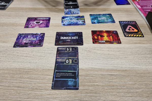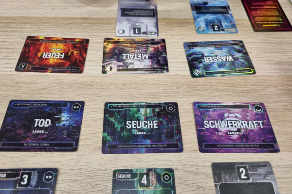 Damit sind die Grundregeln schon im Groben abgerissen. Spannend wird das Spiel dadurch, dass jedes Protokoll zwei bis drei Themen hat, die das Spiel stark beeinflussen können. Kategorien können „Karten ziehen“, „dem Gegner Karten abwerfen lassen“, „Karten in den Spalten manipulieren“ und viele mehr sein.