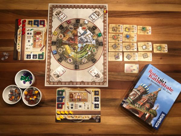 Der Wiederspielreiz und der Anspruch sind durch die unterschiedlichen Bauvorgaben, verschiedene Einflusskarten und den Würfelmechanismus hoch. Trotzdem ist „Die Rote Kathedrale“ nicht zu langwierig und komplex und kann auch mit 50 bis 80 Minuten Spieldauer gerne mal nach einem längeren Spiel oder für Zwischendurch eine nette Abwechslung sein. Durch die Mehrheitenwertung und das Wegschnappen von Bauvorhaben und Würfeln ist eine hohe Interaktion geboten.