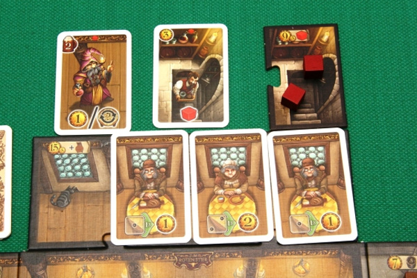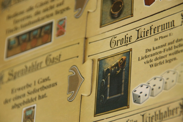 Ein dickeres Brett bohrt das Modul B, in dem man Adlige in den Gästezimmern einquartieren darf, um sich einen Bonus zu sichern, falls die richtigen Würfel zur Verfügung stehen. Hier gibt es schon wenig mehr zu entdecken, denn die Möglichkeiten der Gästezimmer sind vielseitig.
