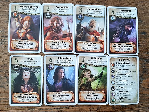 Fazit: „Seventh Hero – Legendäre Krieger“ ist ein Kartenspiel, das sich bestens für eine Spielegruppe eignet, die entweder in kurzer Zeit mehrere spannende Spielrunden erleben möchte oder etwas für Zwischendurch beziehungsweise als „Warm up“ für ein komplexes Karten- oder Brettspiel braucht. Als netten Bonus bietet die Spielanleitung eine alternative Spielweise sowie kurze fiktive Hintergrundinformationen zu den einzelnen Heldinnen und Helden.