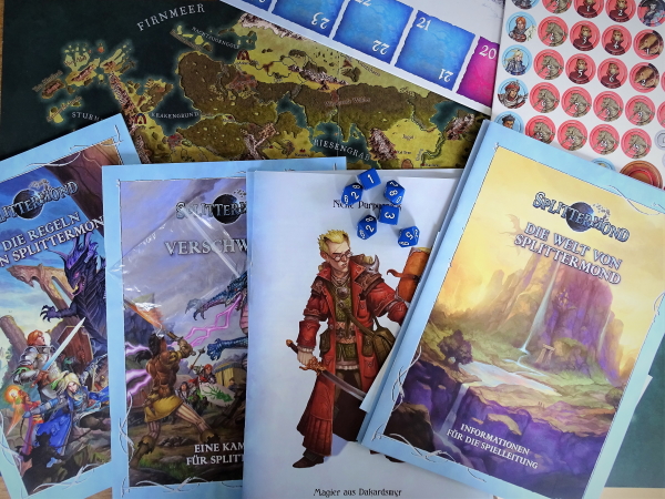 Fazit: Die Neuauflage der Einstiegsbox richtet sich in ihrer Ausstattung gleichzeitig an Neueinsteiger im Bereich Rollenspiel und auch an Spieler mit Brettspielerfahrung. Das ist ein spannendes Konzept und hilft sicher dabei, erste Unsicherheiten beim Einstieg zu überwinden. Insgesamt bietet die Box ausreichend Material für viele Stunden Pen-&-Paper-Spielspaß. Alle, die nach dem Spielen der Grundbox mehr Lust auf „Splittermond“ haben, finden ein umfangreiches Angebot an bereits veröffentlichten – und auch bei uns rezensierten – Erweiterungen und Abenteuern.