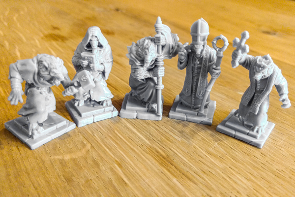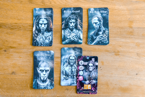 Das Spielmaterial ist sehr ansprechend und wird insbesondere Fans der Band viel Freude bereiten. Die Figuren sind detailreich und orientieren sich an dem Artwork der Powerwolf-Alben. Auch das Artwork der Karten und Pappmarker wurde passend dazu umgesetzt.