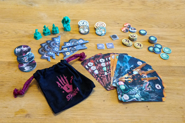 Am Ende des Zuges bewegen sich von nun an alle neuen Gegner auf einmal, wodurch ihre Aktion berechenbarer wird. Da die Spieler über die exakten Werte ihrer Karte schweigen sollen, bleibt dennoch weiterhin ein Glücksfaktor vorhanden. Es gibt noch weitere Neuheiten, die den Spielablauf beeinflussen, wie Gegner mit dem neuen Schadenstyp „Gift“, der sich nicht mit den üblichen Heilmethoden entfernen lässt. Außerdem gibt es neben den Leitern und Treppen nun Portale, welche für noch mehr Bewegung innerhalb der Festung sorgen, allerdings sind diese nur vom Feind nutzbar. Doch auch der Powerwolf bekommt Verstärkung durch neue Waffen und Aktionskarten, die interessante Spielmechanismen mit sich bringen und außerdem toll illustriert sind, wie das komplette Spielmaterial auch. Daran werden Fans wieder besonders viel Freude haben. Toll ist außerdem, dass ein Stoffbeutel im „Strigoi-Design“ für Aktionsmarker beiliegt.