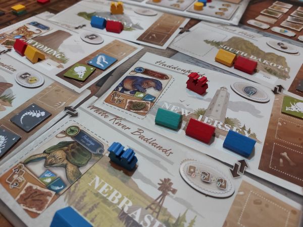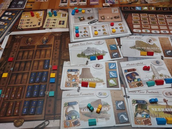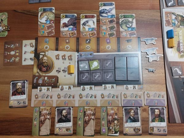 Einer der zentralen Aspekte im Spiel ist die Entscheidung, welchem Paläontologen – Cope oder Marsh – ihr loyal gegenübersteht. Diese Wahl wirkt sich direkt auf den Ruhm aus, den ihr durch bestimmte Aktionen erzielt und der euch zum Sieg führen kann (beziehungsweise soll). Dabei stehen verschiedene Mechanismen im Vordergrund, wie das Management von Ressourcen, Handkarten und die taktische Platzierung von Arbeitern auf Aktionsfeldern.