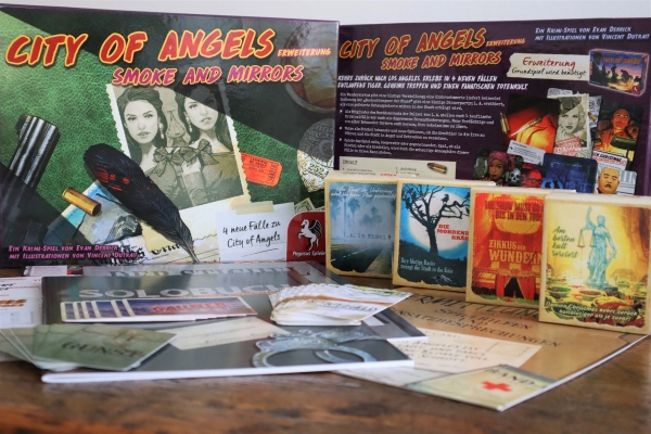 Fazit: „City of Angels – Erweiterung 2: Smoke and Mirrors“ bietet neue Fälle und ist eine richtige Herausforderung. Das Spielprinzip hat Evan Derrick hier leicht modifiziert und zugleich das stimmungsvolle Spielgefühl erhalten. Wer die erste Erweiterung gespielt hat, hat hier weitere spannende Spielstunden vor sich – und wer sich für den Kauf nur einer der beiden Erweiterungen entscheiden möchte, der kann sich mit „City of Angels – Erweiterung 2: Smoke and Mirrors“ auf ein spielerisch schwierigeres Niveau freuen. Übernehmt ihr auch diese neuen Fälle?