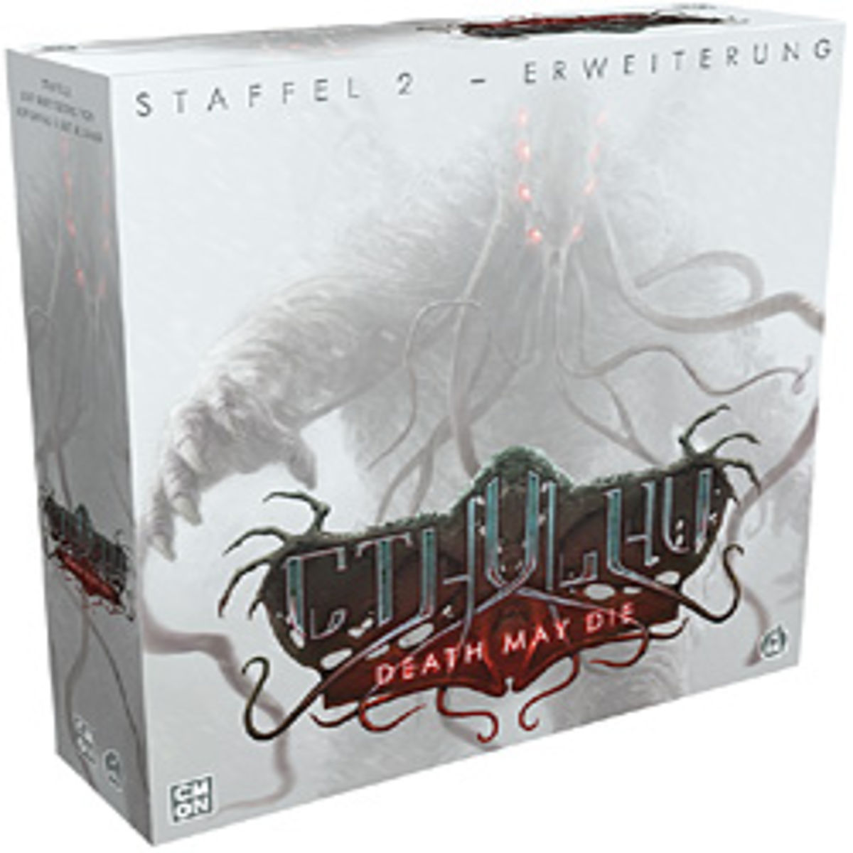 Erneut ist es Cthulhu selbst, der Berühmteste unter den Großen Alten, der den Spielern auf dem Boxen-Deckel mit acht glühenden Augen entgegen schaut. Diesmal schält sich seine monströse Gestalt nicht aus schwarzer Finsternis, sondern aus weißem Nebel, ein schöner Kontrast zur Grundbox – und visuell genauso effektiv. „Staffel 2“ heißt die große Erweiterung zu „Cthulhu: Death May Die“ schlicht – was sehr allgemein klingt, aber doch passt, denn auch die in dieser Box enthaltenen sechs Episoden bilden keine zusammenhängende Kampagne, sondern stehen in Einzel-Episoden nebeneinander, etwa so, wie man das aus dem Genre-Fernsehen der 80er-Jahre kennt.