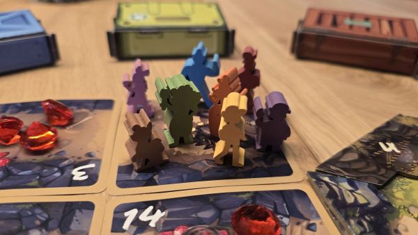 Eingesammelte Edelsteine werden allerdings nicht direkt in die Schatzkiste gelegt. Die befindet sich im Camp. Und so kann die Beute auch erst sicher verstaut werden, wenn man das Camp erreicht hat. Wird die Fallenkarte eines bestimmten Typs ein zweites Mal aufgedeckt, müssen alle Spieler, die sich noch in der Höhle befinden, ohne Rubine und Diamanten zurück ins Base Camp. Das hatte man schließlich so unterschrieben. Und es steht in den Spielregeln.