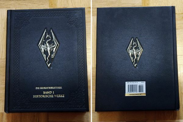 Anmerkung: Laut Kommentaren von Kunden, unter anderem auf Amazon, soll die 2. Auflage weniger hochwertig gestaltet sein als die hier vorliegende 1. Auflage. Die Kunstlederoptik sei nicht mehr vorhanden und bei dem „Skyrim“-Symbol handele es sich nur noch um eine Folienprägung. Ich habe die Sache nicht überprüft, daher kann ich nur widergeben, wovon ich selbst gelesen habe. Wenn diese Feststellungen der Wahrheit entsprechen, wäre das allerdings schade. Zumal das Buch zum gleichen Preis angeboten wird, wie damals die 1. Auflage.