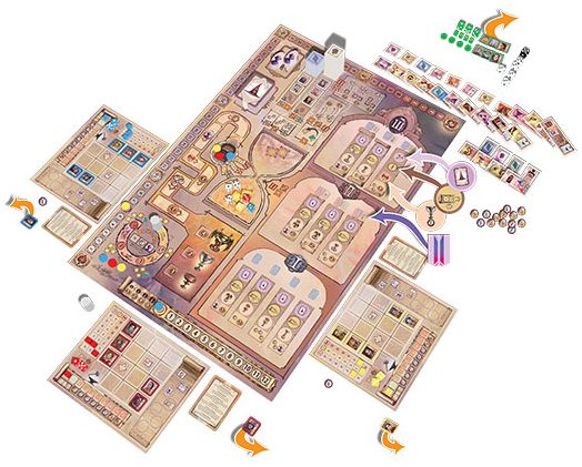 Im Spielablauf wird in jeder der fünf Runden ein Würfelpool gewürfelt, der allen Spielern zur Verfügung steht. Ein Spieler nach dem anderen nimmt sich einen Würfel und setzt ihn ein, um eines der Aktionsfelder zu aktivieren. Natürlich muss der Wert des Würfels zum Feld passen, denn nicht jeder Wert hat die selben Möglichkeiten. Der besondere Kniff dabei: einige Würfel gehören den Spielern. Wenn sich dann ein anderer Spieler diesen Würfel aussucht, darf der Besitzer ebenfalls eine Aktion damit durchführen.