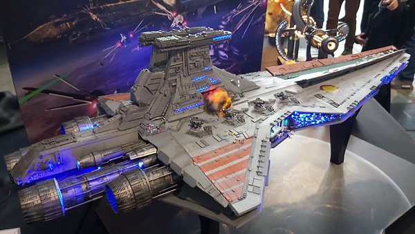 Vermisst habe ich vor allem zwei Aspekte. Die LEGO-Bauer, die früher immer die Galerie von Halle 1 beherrscht hatten, waren nicht mehr vor Ort. Sehr schade, denn deren Modelle waren immer echte Hingucker, nicht nur für junge Besucher. Und die fantastische Literatur – also alle Lesungen und Kleinverlage – fehlte ebenfalls völlig, ein echter Mangel, denn wo sonst, wenn nicht auf solchen Messen, bekommt man die Gelegenheit, außergewöhnliche Buchfunde in den Angeboten der Kleinverlage zu machen und mit Machern der Szene ins Gespräch zu kommen. Eine Hugendubel-Messebuchhandlung ist da kein Ausgleich. Wenn ich zu Hugendubel will, gehe ich in die Stadt. Dafür muss ich kein Con-Ticket kaufen. Zumal dort halt auch vor allem die Standard-Phantastik verkauft wird, die man auch sonst in jeder großen Buchhandelsfiliale kaufen kann. Aber es gibt ja noch weitere Hallen in der Messe Stuttgart. Vielleicht ist 2024 ja wieder Platz für eine LEGO-Show und die literarische Phantastik (inklusive eigener Lesebühne).