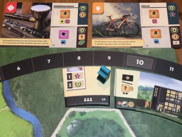 Im Sägewerk steuerst du deine Führungskraft, um Gebäude zu nutzen und aufzuwerten, Ressourcen zu beschaffen sowie neue Aufträge oder Zielkarten zu erhalten. Hier schlägt das wirtschaftliche Herz des Spiels. Aus Holz entstehen Möbel, Musikinstrumente oder Bauwerke – und jede fertige Lieferung bringt Siegpunkte und oft zusätzliche Vorteile.