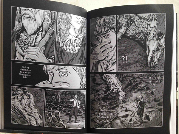Es werden die Folgen von Gewaltanwendungen gegen Menschen gezeigt, auch Szenen, in denen Tiere Schaden erlitten haben. Das bedeutet dann konkret, dass der Horror in diesem Band nicht immer subtil in Szene gesetzt wird. Diese drastischen Szenen und auch der subtilere Horror sind Gou Tanabe jedoch hervorragend gelungen! Die Geschichte entfaltet sich in Band 2 erst richtig – im Gegensatz zum eher zurückhaltenden Band 1. Nochmal ein Wort zu den Schwarz-Weiß-Zeichnungen: Diese transportieren gerade wegen ihrer Grauschattierungen die Stimmung der Geschichte gut. Ob diese so gut herübergekommen wäre, wenn die Illustrationen in Farbe gezeichnet worden wären, zweifle ich an.