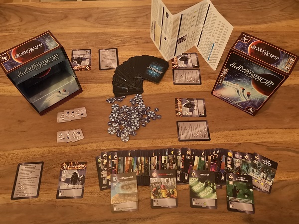 „Jump Drive“ ist für 2 bis 4 Spieler und soll 15 bis 30 Minuten dauern. Das Spiel funktioniert mit verschiedenen Spielerzahlen ähnlich gut und kann durchaus in der angegebenen Zeit gespielt werden, wenn allen das Spiel bekannt ist. Das Mindestalter wird mit 10 Jahren beziffert und ist aus meiner Sicht realistisch angegeben.