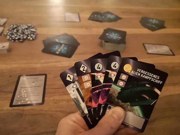 Kritisch sehe ich die Zugänglichkeit des Spiels, denn auch wenn die Regeln radikal gekürzt sind, handelt es sich nicht um ein Familienspiel. Es ist schlecht zu erklären, aber trotz aller Einfachheit wird man zu Beginn von den Karten stark gefordert und muss sich für etwas entscheiden, was man noch überhaupt nicht einschätzen kann. Erst nach einigen Spielen wird klar, worauf man achten sollte, und man beginnt mit einer klaren Strategie hineinzugehen.