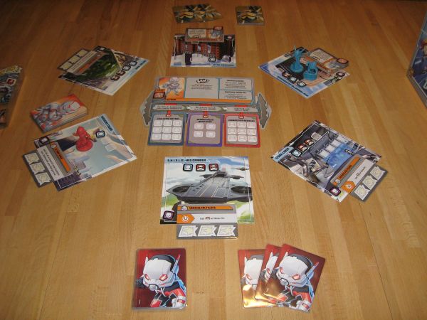 Aufbau einer 2-Spieler-Partie: Ant-Man und the Wasp vs. Ultron.
