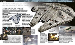 Ein buntes Sammelsurium an Waffen und Ausrüstung aus allen Filmen prägen das Kapitel „Technik“. Auch viele Droiden werden hier eingeordnet, sofern sie keine namhaften Helden wie C-3PO, R2-D2 oder BB-8 sind. Eher kürzerer Natur sind ebenfalls die Raumschiff- und Fahrzeug-Einträge in Kapitel 4. Hier bleibt das Werk deutlich hinter Geschwisterprodukten wie den Risszeichnungs-Bänden zurück. Aber da die Zielsetzung im vorliegenden Fall eindeutig der kompakte Überblick ist, kann man das dem Buch nicht vorwerfen. Lücken fallen auch hier ein wenig auf, insbesondere im Bereich der Podrenner. Einzelne Doppelseiten, die allerdings sehr bilderreich sind, erhalten namhafte Gefährte wie die Sklave 1 oder der Millennium Falke. Beschämend wenig Platz wird dagegen „imperialen“ Superschiffen wie etwa der Executor oder Snokes Supremacy eingeräumt.