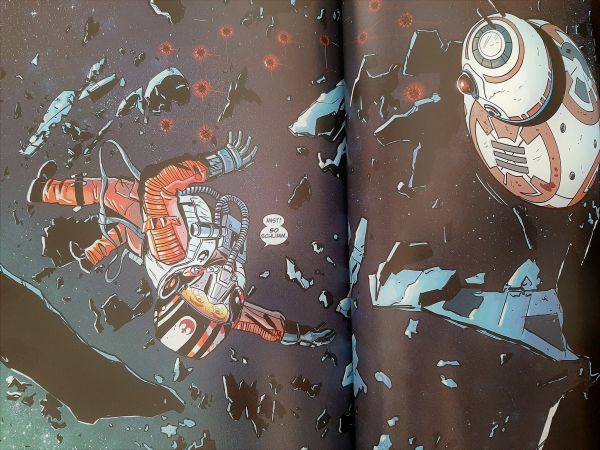 Hals über Kopf stürzen sich die Leserinnen und Leser im „Annual #1“ mit Poe Dameron in eine riskante Situation. Denn der Protagonist schafft es, bei einer „einfachen“ Routineaufklärungsmission eine Auseinandersetzung mit der Erste Ordnung anzuzetteln. Als ob das nicht schon Herausforderung genug wäre, muss Poe Dameron zudem im schwerelosen Weltall durch ein altes Minenfeld schweben. Hätte er dies im Vorfeld gewusst, wäre er bestimmt nicht so leichtsinnig ohne seine Crew, die „Schwarze Staffel“, gestartet. Hat sich da unser Held zu viel vorgenommen?