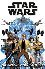 Fazit: „Skywalker schlägt zu!“ erzählt zunächst von einer krachenden Kommando-Operation der Rebellen und ab der Mitte dann die von Alt-Fans bereits häufiger gelesene Geschichte von der Suche der Allianz nach einer neuen Rebellenbasis und Vaders Jagd nach dem Todesstern-Piloten – nur eben für den neuen Kanon frisch aufbereitet. Ein paar Plotfehler und eine in meinen Augen ziemlich fragwürdige Wendung kurz vor Schluss schmälern leicht das Gesamtbild. Aber unterm Strich ist die Optik des Comics klasse und auch die Handlung weiß spannend zu unterhalten.