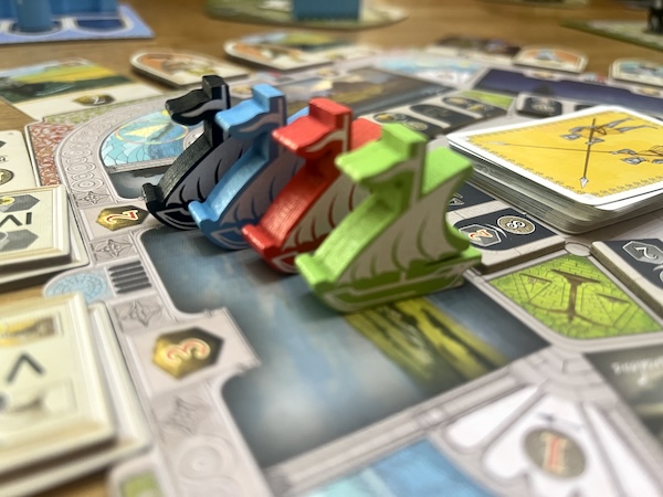 Beim Reisen geht es per Boot von Rom auf fünf Etappen in einem Rondell Richtung Barcelona und von dort aus zurück nach Rom. Dort, wo mein Schiff Anker wirft, kann ich in der folgenden Aktionsrunde meine strategischen Planungen umsetzen und die Märkte besuchen, Verbündete anwerben oder neue Aktionskarten kaufen.