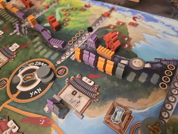 Willkommen im alten China zur Zeit der Streitenden Reiche vor gut 2000 Jahren. Als Oberhaupt einer Adelsfamilie wollen wir mehr Prestige anhäufen als unsere Mitspieler. Prestige wurde auch im damaligen China schon in Siegpunkten gemessen. Und was wäre „T-Spiel“ ohne Siegpunkte? Für diese setzen wir Gouverneure in Provinzen ein, treiben Handel und zeigen an den Grenzmauern, wo der Hammer hängt.