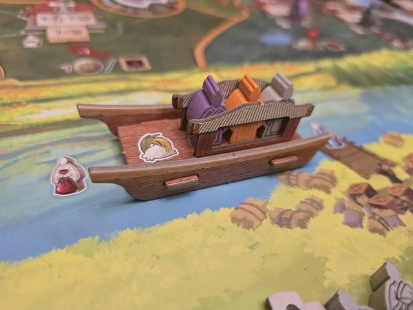 Timing-Aspekte sind bei „Tianxia“ auf den zweiten Blick durchaus gewichtig. Beispiel Verteidigung: Wer Soldaten früher einsetzt, gewinnt (oft) Gleichstände, wenn es um die Verteilung der Siegpunkte geht. Beispiel Gouverneur: Der erste Gouverneur zieht nicht nur billiger ins Häuschen ein, er bekommt zur Belohnung noch eines dieser Plättchen für Boni oder Jade-Figuren. Beispiel Palasttrack: Wer eher hochsteigt, hat die freie/bessere Auswahl an Bonusplättchen. Darüber hinaus finde ich die Barken aus hinsichtlich ihres Timings interessant: Ich möchte früh Arbeiter einsetzen, um früh Rohstoffe zu bekommen, die ich dann ja gewinnbringend in den Provinzen einsetzen kann. Ich möchte auch früh Arbeiter einsetzen, damit diese früher, vielleicht sogar noch in derselben Runde, von der Barke fliegen, um dann als Händler einen coolen Einmal-Schub geben zu können. Ich möchte aber spät Arbeiter einsetzen, damit sie in der nächsten Runde an Bord der Barke noch Einkommen generieren.
