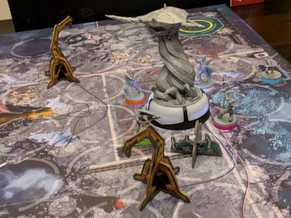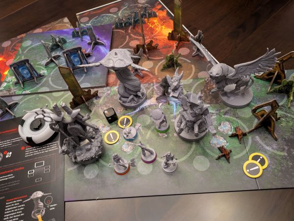 Ansonsten konzentrieren wir uns darauf, unsere Figuren über das intelligente Spielbrett zu bewegen, Aktionen per Tablet oder Smartphone auszulösen und darauf zu warten, dass wir per App mitgeteilt bekommen, wie uns der Boss auf die Mütze haut.