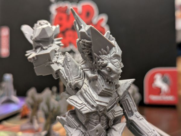Dabei kann die Position und der Status des Bosses von entscheidender Bedeutung sein. Der LED-Ring in der Basis des Bosses zeigt nämlich nicht nur seine Blickrichtung, sondern auch den Status seiner vier Seiten an. Denn je nach Situation kann eine Seite besonders empfindlich sein, gerade über einen starken Schutz verfügen oder instabil sein. Greift man dann von der richtigen Seite mit der richtigen Karte an, werden Sondereffekte ausgelöst. Und genau hier greift das Besondere an diesem Spiel. Man lernt seine Karten und ihre Effekte nach und nach kennen und kann sich gegenseitig unterstützen, damit alle das Maximum aus ihren Talenten herausholen können.