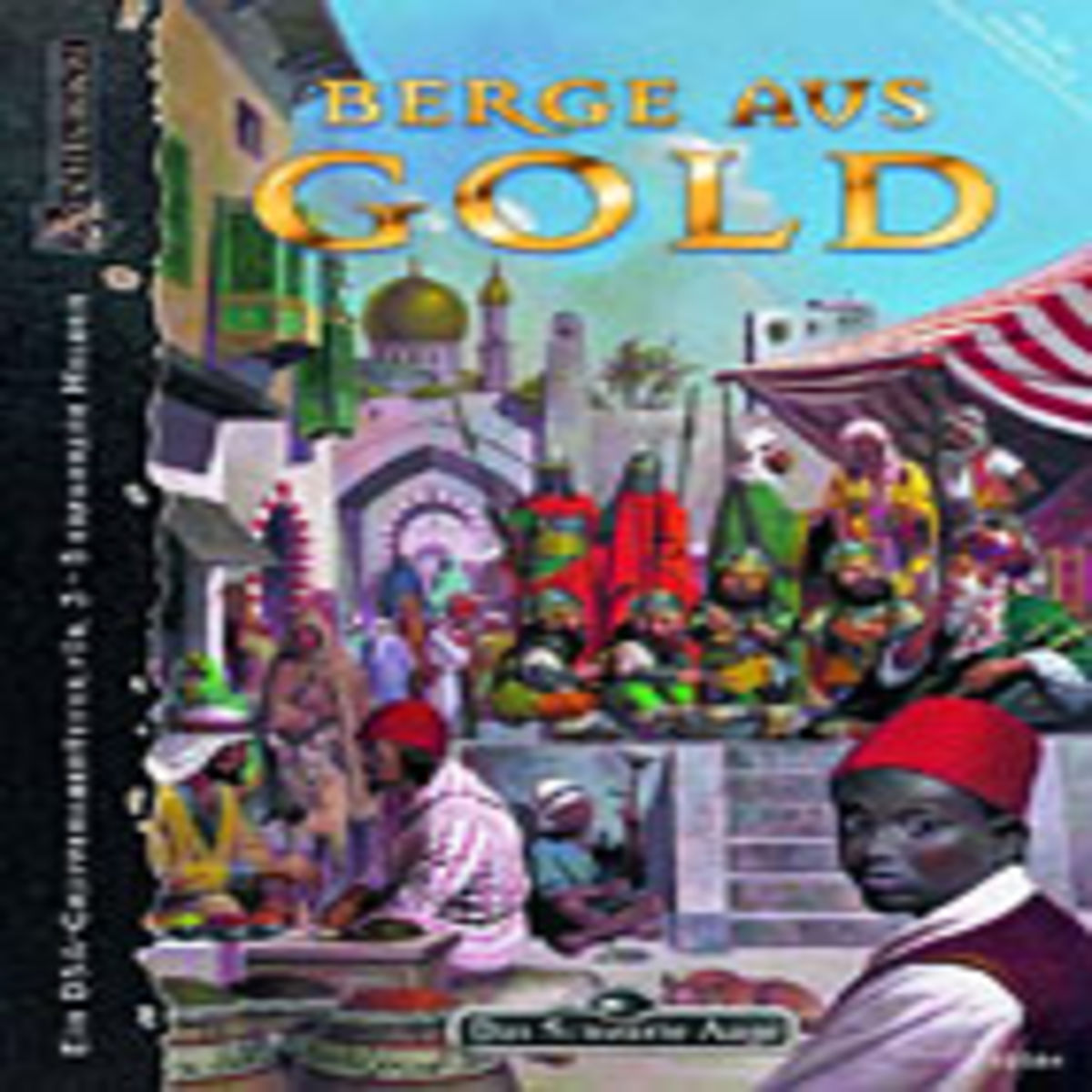 Zum Schluss noch eine Randbemerkung zur Covergestaltung: Zum einen wüsste ich gerne, was auf den abgebildeten Gewürzsäcken geschrieben steht (sofern es sich nicht um Phantasie-Schnökel im arabischen oder persischen Stil handelt) und zum anderen würde mich interessieren, wen die vier gnomenhaften Gestalten mit den Kettenhemden und den Metallhelmen darstellen sollen! Wenn das Zwerge sind bzw. wenn das des Zeichners Visualisierung aventurischer Zwerge sein soll, dann wünsche ich mir fürs nächste Cover von „Berge aus Gold“ einen anderen Illustrator.
