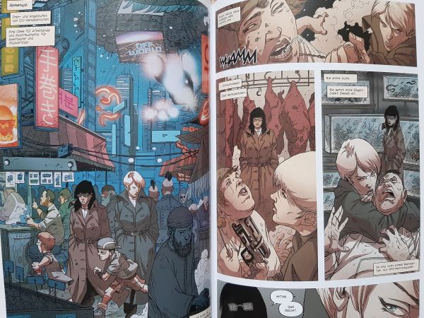 Fazit: „Blade Runner 2019 – Off-World Jenseits der Erde“ bleibt der Linie des ersten Comic-Bandes treu. Man hat den Eindruck einen „Blade Runner“-Film in den Händen zu halten, welcher gekonnt ikonische Filmelemente aufnimmt und neu aufleben lässt. Die Protagonistin ist keinesfalls als reine Spiegelung von Rick Deckard, im Film von 1982 verkörpert durch Harrison Ford, zu sehen. Man möchte ihre Hintergrundgeschichte erfahren und sehen, ob sie für sich ein glückliches Leben in dieser tristen „Blade Runner“-Welt finden kann. Einziger Kritikpunkt bleibt damit die Wartezeit auf den dritten Band – oder anders ausgedrückt, dass dieser Band nicht doppelt so viele Seiten umfasst.