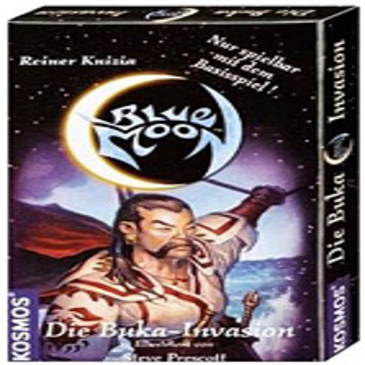 Die Buka, ein seefahrendes Piratenvolk mit deutlich chinesisch-mongolisch mittelalterlichem Touch, bestehen aus sechs Familien zu je fünf Karten. Diese können alle gemeinsam als Volk gespielt werden oder als fünf Karten starkes Familien-Set einem anderen Volk untergemischt werden. Jede Buka-Karte trägt nämlich auch eine für die Familie spezifische Markierung in der unteren linken Ecke der Karte. Neben wieder einmal hervorragenden Illustrationen und einer interessanten Erweiterung der Hintergrundgeschichte Blue Moons hat „Die Buka-Invasion“ auch spieltechnisch Neues zu bieten.