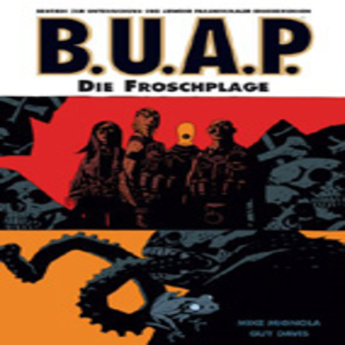 Mea Culpa. „B.U.A.P. 2: Die Froschplage“, der zweite Band der mittlerweile vierbändigen „B.U.A.P.“-Reihe um die paranormalen Verbrechensbekämpfer Abe Sapien, Liz Sherman, Roger und Johann Kraus, liegt schon eine halbe Ewigkeit auf meinem Schreibtisch herum. Band 1 hatte mir damals zwar ganz gut gefallen, aber irgendwie fehlte mir Hellboy, und das Konzept mehrerer, zum Teil recht kurzer Geschichten, war nicht unbedingt mein Format. Dies mögen wohl die Gründe sein, warum ich den Nachfolgeband so ungewöhnlich lange habe – wortwörtlich – links liegen lassen. Erst jetzt, mit dem neuen „Hellboy“-Film am Horizont, wurde die Neugierde plötzlich immer stärker – und ich stelle fest: Ich habe damals einen großen Fehler gemacht!