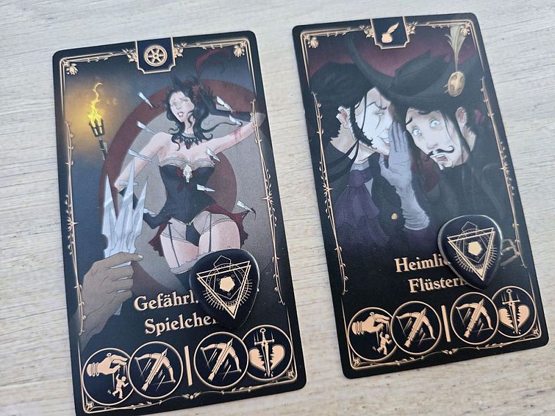 In den ersten Szenarien sind die Effekte noch einfach: Bewege dich zum Beispiel bei der „Heilerin“ auf der Verwegenheitsleiste oder der Zurückweisungsleiste nach oben. Die „Kammerdienerin“ erlaubt dir wiederum, die abgelegten Karten deines Mitspielers anzuschauen. In späteren Szenarien verursacht der „Hypnotiseur“ beispielsweise einen Rollentausch. Die „Musikerin“ gewährt einem gleich zwei Spielzüge hintereinander, was ein Killer sein kann im Endgame.