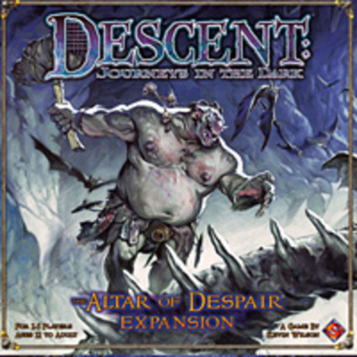 Markige Worte zieren die Rückseite der neuen „Descent“-Erweiterung „The Altar of Despair“ – aber tatsächlich ist die gewichtige Box einmal mehr nichts für Zauderer und Weicheier, denn eine ganze Menge neuer Gefahren erwarten die Spieler in den dunklen Gängen und Hallen, die sie durchstreifen müssen, um letztlich den Tempel von Zorek, dem Gott der Verzweiflung, zu finden und zu zerstören. Das Cover zeigt einen Troll in angriffslustiger Pose und lässt sich zusammen mit dem „The Well of Darkness“-Karton zu einem Widescreen-Motiv zusammenlegen.