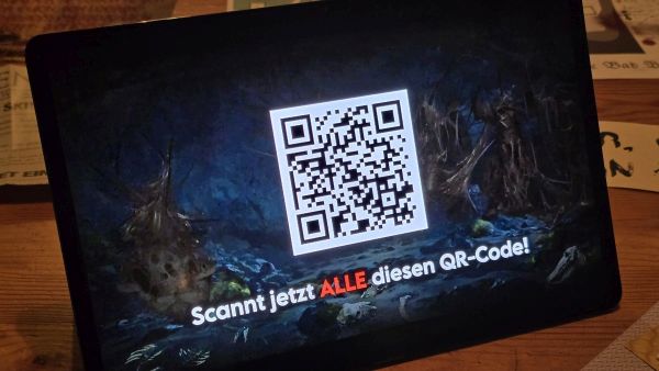 Wir müssen uns eigentlich um nichts weiter kümmern. Die Website nimmt uns direkt an die Hand. Storyelemente im Hörspielformat wechseln sich ab mit von den Spielern vorgetragenen Vorlesedialogen (per Zugriff über einen QR-Code auf dem Handy) und münden schließlich in eine Rätselphase, für die uns neues Material aus einem der Umschläge zur Verfügung gestellt wird. Es wird empfohlen, ein Tablet oder auch einen Laptop zu nutzen, damit alle Mitspieler die Story am Bildschirm gut verfolgen können. Und ja, je größer der Bildschirm, desto besser.