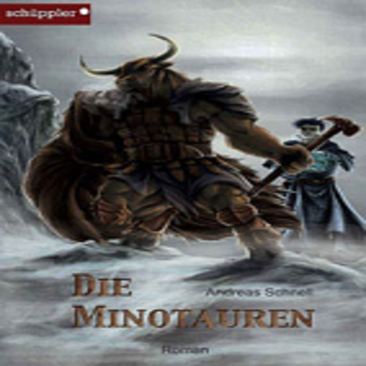 „Die Minotauren“ ist ein Roman von Andreas Schnell, der zuvor als Autor des Rollenspiels „Heredium“ und des Heredium-Romans „Neue Ufer“ in Erscheinung getreten ist. Das düstere Cover zeigt den kriegerischen Minotauren Arrn und den Magierlehrling Miharrel, zwei Hauptpersonen des Romans.