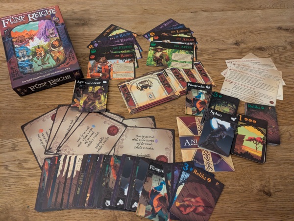 Die Anleitung ist kurz und knapp, wie es dem Spiel auch gerecht wird. Es bleiben zwar ein paar Fragen offen, wenn man die Karten sortiert und das erste Spiel vorbereitet, das klärt sich aber schnell, wenn man später die Sonderfertigkeiten aller Vertreter der Reiche angeschaut hat. Sind die Karten erst einmal sortiert, ist das Spiel schnell aufgebaut, sodass man nach dem Regelstudium innerhalb von fünf bis zehn Minuten losspielen kann.