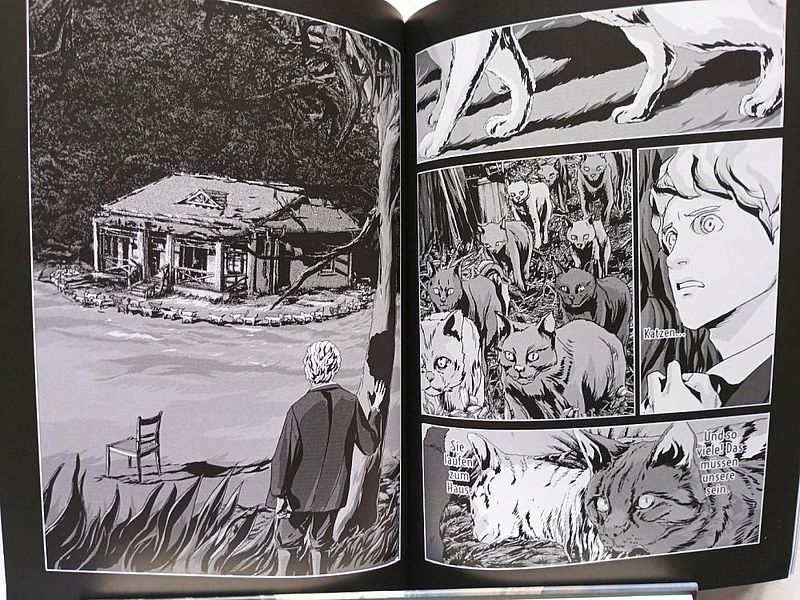 Während die beiden Suchen aus der ersten und der dritten Bildgeschichte in interessanter Art und Weise besonders bildgewaltig und phantastisch anmuten, geht es in der zweiten eher um moralische Aspekte: den Wunsch nach Vergeltung und Gerechtigkeit. Hier wird das Phantastische nur relativ kurz dargestellt, lässt aber den*die Leser*in am zufriedensten zurück. Mir gefallen phantastischere Geschichten normalerweise besser, aber in diesem Band gefiel mir das Drama um das Kätzchen am besten, auch wenn es in einer blutigen Darstellung endet. Die beiden anderen Storys wissen auf ihre, eben andere Weise, zu gefallen. Sie wirken länger als die jeweils zugrunde liegenden Geschichten und haben mir sogar mehr zugesagt als die beiden Originalwerke von Lovecraft.