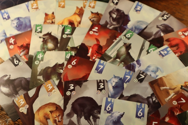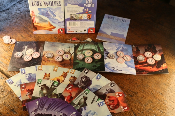 Fazit: „Lone Wolves“ ist ein cleveres, spannendes Duellspiel, das mehr taktische Tiefe bietet, als man auf den ersten Blick vermuten würde. Die Kombination aus Stichspiel und Area-Control funktioniert erstaunlich gut und sorgt für abwechslungsreiche Partien. Das Spiel ist meist knapp, jede Entscheidung zählt, und man kann sich nie sicher sein, wie eine Partie ausgeht. Selbst wer viele Stiche verliert, kann am Ende noch gewinnen. Fast schon poetisch ist, dass viele „Lone Wolves“ durch geschickte Kombinationen aus Karten und Plättchen oft stärker sind als wenige mächtige „Alpha“-Wölfe.