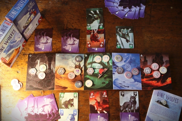 „Lone Wolves“ von Anthony Perone und Yasuyuki Nakamura ist ein taktisches Duellkartenspiel für zwei Personen, welches Elemente eines Stichspiels und eines Area-Control-Spiels kombiniert. Der Inhalt umfasst einen Spielplan, 30 Wolfskarten, 25 Plättchen und eine Anleitung. Ziel des Spiels ist es, „der Alphawolf“ zu werden. Dafür muss man am Ende der Partie die meisten Siegpunkte gesammelt haben. Diese erhält man durch die gespielten Wölfe in den fünf Gebieten. Hinzu kommen zu sammelnde Narbenplättchen, die jeder Partie eine unterschiedliche Wendung ermöglichen.