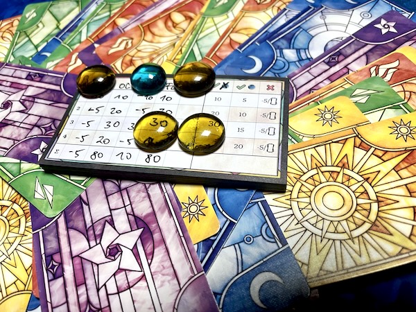Fazit: „Lumen“ ist ein von den Regeln schnell zu erlernendes Kartenspiel, das durch seinen Deduktions-Charakter Laune macht. Dieser kann das Stichspiel je nach Vorerfahrung aber zu einer Herausforderung machen. Mit jeder Partie wächst du aber mehr in die Aufgabe rein, die unbekannten Kartenwerte zu deuten. Die optische Aufmachung der Karten und die bunten Glassteinchen, mit denen du deine Wertungen machst, schmeicheln auch dem Auge.