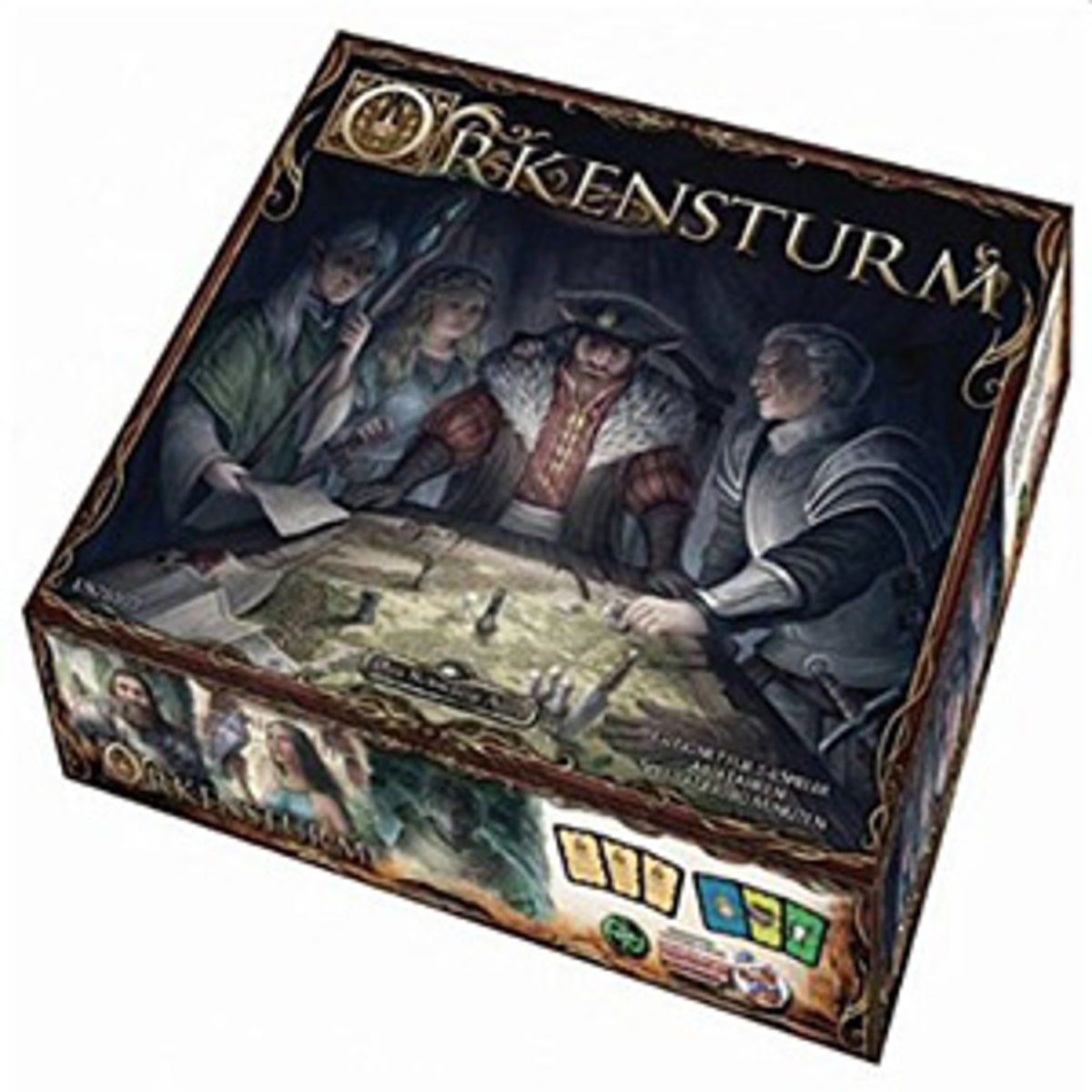 Mit „Orkensturm“ veröffentlicht Ulisses Spiele nach einigem zeitlichen Abstand mal wieder ein Brettspiel als Ergänzung zum Rollenspiel „Das Schwarze Auge“, in dem vor allem aventurische Geschichte in taktischer Hinsicht erlebbar sein soll. Allerdings handelt es sich dabei nicht um eine Eigenentwicklung, sondern um eine aventurisierte und entsprechend von Begriffen und Hintergrund angepasste Form des Originals „Richard I.“, in dem es um die Abwesenheit Richard Löwenherz vom englischen Thron und die Usurpation durch John Ohneland geht. Ganz ähnlich ist es im Mittelreich, als Prinz Brin gegen die Orks ziehen muss und Answin von Rabenmund sich auf den Thron des Mittelreichs schwingt. Die Spieler müssen als Berater eine der beiden Parteien ergreifen, Einflusskarten sammeln und damit den Kampf Brins gegen die Orks unterstützen oder sabotieren. Der Verlauf des Orkensturms ist dabei entscheidend für spätere Punktevergaben.