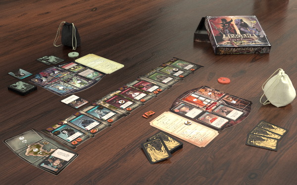 A summary: This game appears to be highly competitive and for two players only. It’s strongly asymmetric and differs from most of the games in this genre I know so far. The witch, who wants to cleanse the land and to protect it from the foreign forces prepares a ritual and wins if she is able to accomplish it. The hunter wants to identify the witch and wins if he can find her before the ritual is done. The game itself is impressingly thematic and every action pulls you into the story. It gets very thrilling after just a few rounds and keeps the pressure on both players until the end. If you like card driven games for two players I can absolutely recommend backing it.