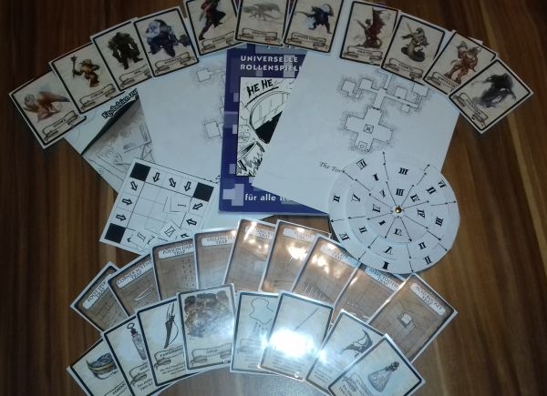 Alsbald tummelten sich also Orks und Goblins, Flegelschnecken, ein Einhorn, Steingolems und noch andere Kreaturen neben Speerfallen, Zahlenrätseln, riesigen Steinkugeln und Fallgruben. Die Heldengruppe, sechs tapfere Recken auf der Suche nach Ruhm und Reichtum, nahmen es in der Folge auch mit allen Gefahren auf. Tatsächlich hatten sie vor dem finalen Kampf nahezu alle Bonuspunkte verbraucht, während ich durch die sehr offene Vorbereitung nur wenige Komplikationspunkte eingesetzt hatte. Doch das hinderte sie nicht daran, auch den als Fluchfürst wiedererstandenen Magier auf seiner Flegelschnecke zu erledigen und mit Bergen von Gold und einigen wertvollen magischen Gegenständen den Keller zu verlassen.