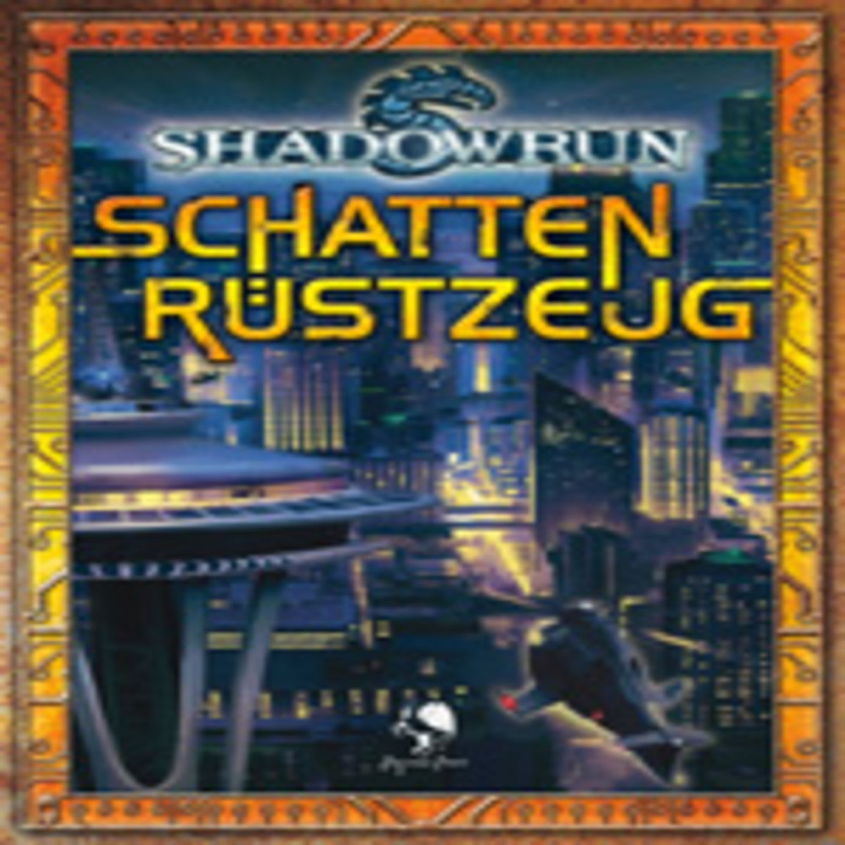„Schattenrüstzeug“ für „Shadowrun“ ist eine Spielhilfe im klassischsten Wortsinne. Neben einem Spielleiterschirm befinden sich in dem Set vier vollfarbige Karten mit Orten in den Sprawls, ein Abenteuer, ein Buch mit Hilfsmitteln zum Spiel, sechs vollfarbige Referenzbögen mit Kampfabläufen und Probeabfolgen, ein Poster, drei Aufkleber sowie eine Tabellenübersicht und ein Masterindex für die Bücher „Arsenal 2070“, „BodyTech“, „Runner-Kompendium“, „Straßenmagie“ und „Vernetzt“ (im Falle des Masterindex erweitert um das Grundregelwerk und „Wildwechsel“). Das Ganze kommt in einer der guten alten Spiel-Pappboxen daher, die früher immer „etwas Besonderes“ darstellten und die ich mir auch heute noch gerne ins Regal stelle. Das Cover der Box, die übrigens gut gefüllt ist, zeigt die Skyline von Seattle bei Nacht, ein Motiv, dass auf dem Poster und dem Spielleiterschirm wiederholt wird.