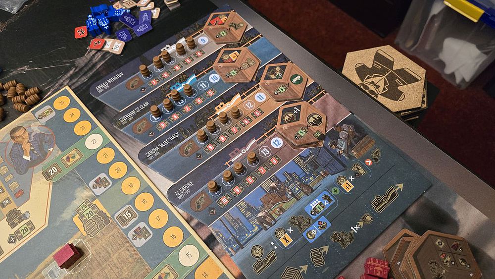 „Speakeasy“ ist ein auf vielen Ebenen verwobenes Spiel ist. Es gibt viel zu probieren, viel zu studieren, aber auch das Potenzial, viel zu frustrieren. Ist man früh falsch abgebogen oder hat sich verkalkuliert, muss man sich vom Spielsieg verabschieden. Auch wenn die Siegpunkte geheim im Safe versteckt sind und aus Ausmaß der Niederlage nicht klar ist, habe ich eine Partie gehabt, in der ein Mitspieler nach der ersten Lucky-Luciani-Phase und einem verlorenen Speakeasy, Fass und Familienmitglied sehr unzufrieden die restlichen rund drei Spielstunden ertragen hat. Und hier sind wir wieder bei dem Punkt, dass „Speakeasy“ wirklich ein Expertenspiel ist. Die Punktzahlen können sich durch unterschiedlich gut ineinandergreifende Entscheidungen erheblich unterscheiden. Ein Faktor drei kann da schon mal dazwischen liegen, gerade wenn erfahrene und unerfahrene Mafia-Capos am gleichen Tisch sitzen. Kurz gesagt: Die eigenen Entscheidungen sind bedeutungsvoll – und die Entscheidungen der Mitspieler auch.
