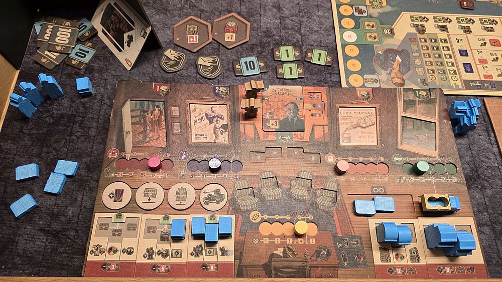 Die Opulenz des Spielmaterials schlägt sich direkt in der sehr stimmungsvollen Tischpräsenz von „Speakeasy“ nieder. Jetzt noch ein bisschen Grammophon-Kratzen in der Luft und die Immersion ist so gut, wie sie bei einem Eurogame sein kann. Ehrlicherweise haben wir auf das Rauchen von Zigarren verzichtet. Wir hatten gerade nichts Kubanisches zur Hand. Und meine Frau hätte uns aus dem Haus geworfen. Ich bin eben doch kein Capo.