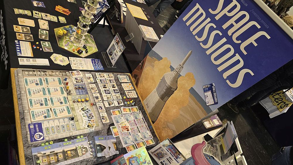 Auch sympathisch war Frank Müller, der Autor von „Space Missions“, welches er im Eigenverlag tiros-games veröffentlicht hat. Die Spieler erleben als Mitglieder einer Raumfahrtbehörde die spannende Zeit der Weltraumfahrt bis zum Jahr 1969, dem Rennen um die erste bemannte Mondlandung. Wir haben es hier mit einem kompetitiven Kennerspiel mit einem neuartigen Deck-Abbau-Mechanismus (Deck-Destruction) zu tun. Die Kartendecks der Spieler spiegeln die Zuverlässigkeit der Systeme und die Qualität der Astronauten-Teams wider. Diese Decks bestehen aus drei Arten von Karten, die das Ergebnis der Missionen bestimmen:? „Kein Problem“-Karten (Erfolge), „Kleines Problem“-Karten (mittleres Risiko), „Großes Problem“-Karten (hohes Risiko/Misserfolge). Die Spieler bilden Astronauten aus, bauen Raketen zusammen und führen Missionen durch, wobei sie ihre Kartendecks optimieren müssen, um Erfolge zu maximieren und das Risiko von Problemen zu minimieren. Das Spiel ist ein Wettlauf, der endet, sobald ein Spieler erfolgreich die Mondlandung abgeschlossen hat. Der Spieler mit den meisten Siegpunkten aus erfolgreichen Missionen und Fortschritten in den Erfolgsbereichen gewinnt. Hätten das die Sowjets damals nur auch schon gewusst.