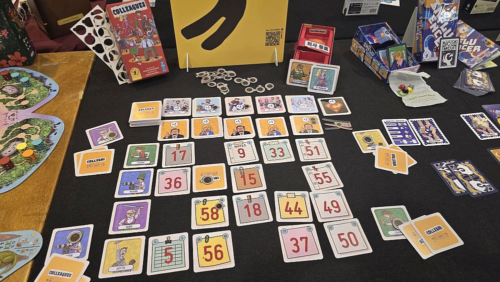 „Colleagues“ versetzt die Spieler in ein humorvolles und ironisches Büro-Umfeld, in dem sie als Arbeitskollegen in einem Wettstreit um die „beste“ Position stehen. Arbeit muss dabei genauso vermieden werden wie Mecker vom Chef. Es handelt sich um ein schnelles Karten-Platzierungsspiel mit Rollenkarten, bei dem die Spieler versuchen, Aufgaben auf ihrem Schreibtisch zu erledigen, ohne dabei zu sehr aufzufallen. Das paradoxe Ziel ist es, nicht durch herausragende Leistung oder die größte Menge an Arbeit aufzufallen, denn am Ende gewinnt derjenige, dem es am besten gelingt, nicht hervorzustechen und unauffällig zu bleiben. Kaffee hilft dabei. Man könnte das Spiel auch als Büro-Simulation kategorisieren.